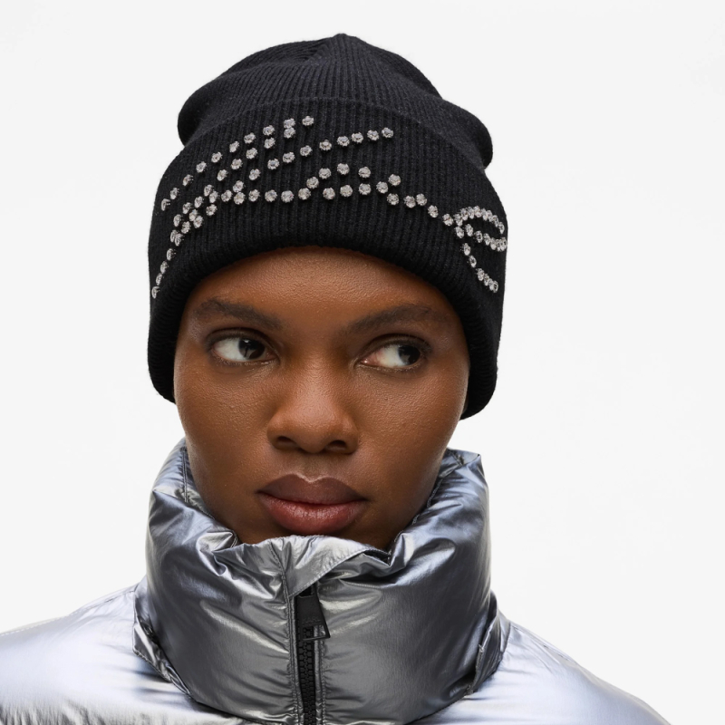 KARL LAGERFELD - Bonnet noir à strass K/SIGNATURE