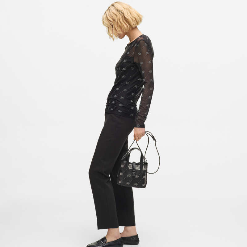 Une finition en mesh délicate ornée de strass scintillants sur toute la surface, voilà ce qui définit ce mini tote bag KARL LAGERFELD. Une fermeture à languette supérieure avec un élégant cadenas Karl Autograph confère un autre détail accrocheur.