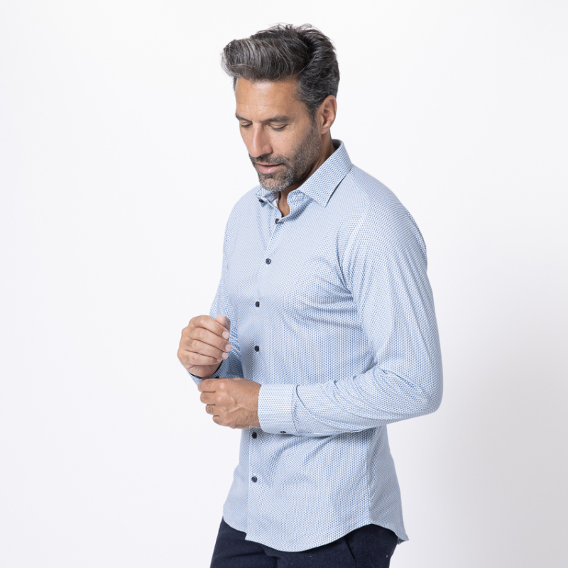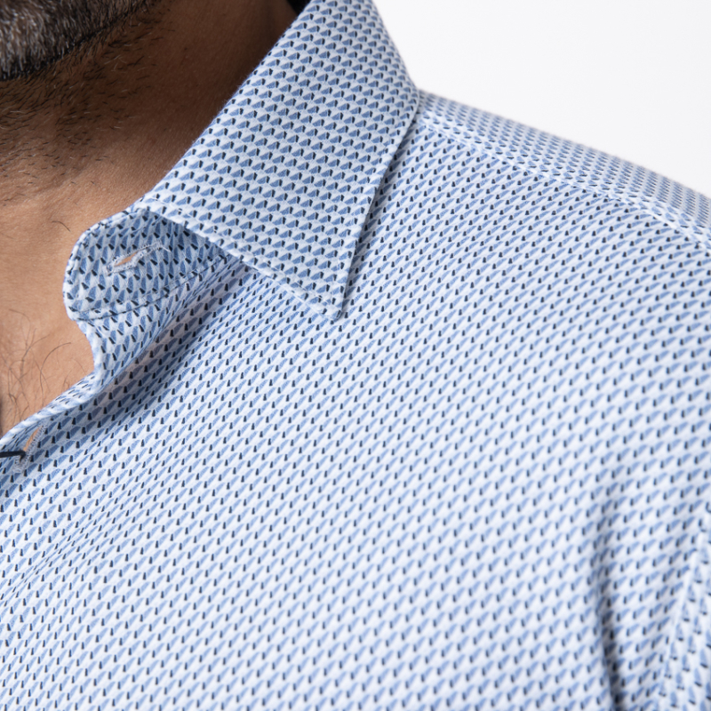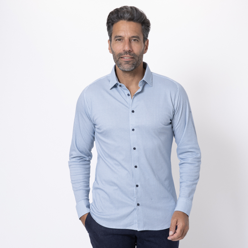 Cette chemise Desoto à la coupe ajustée allie confort et élégance grâce à son design flexible unique et ses motifs sophistiqués. Confectionnée en jersey interlock, elle est très agréable à porter et permet une liberté de mouvement incomparable, en faisant ainsi votre meilleure alliée au quotidien.