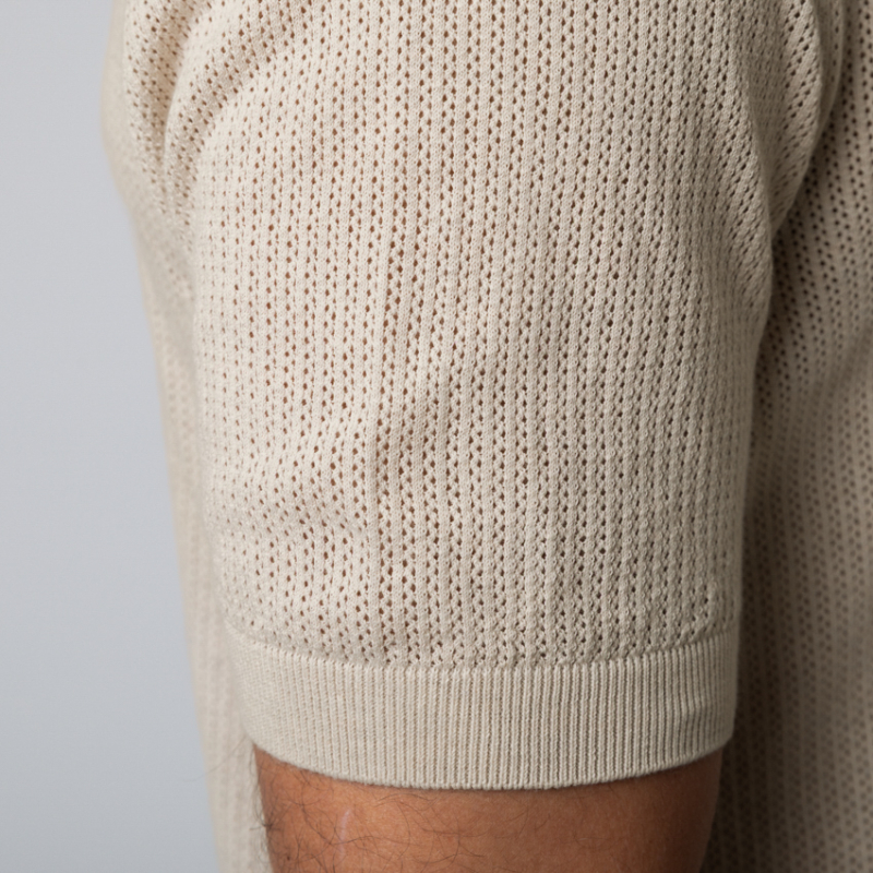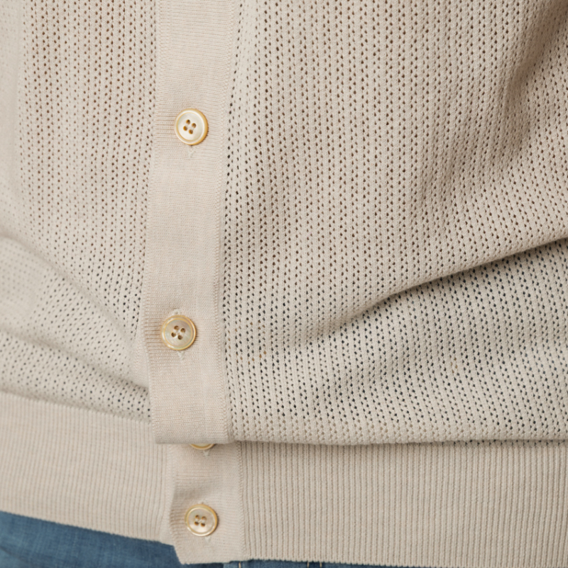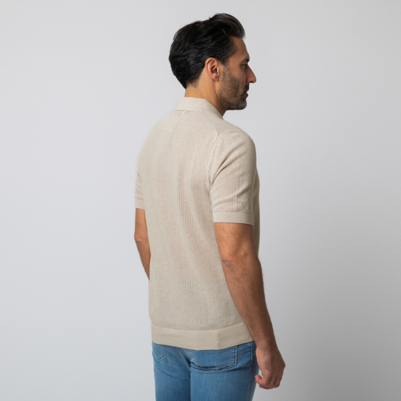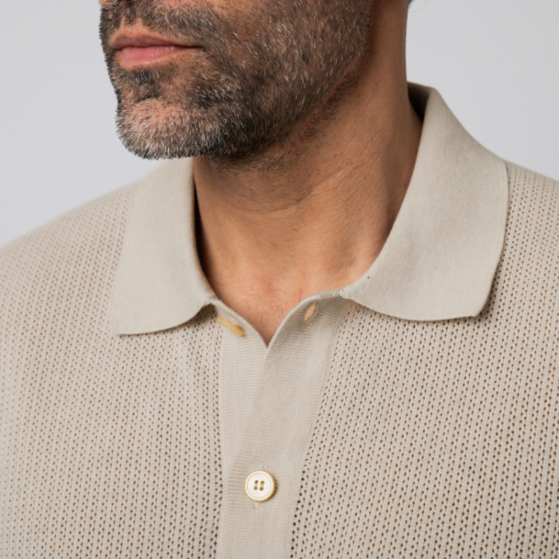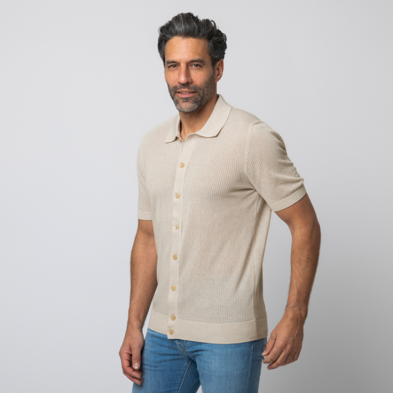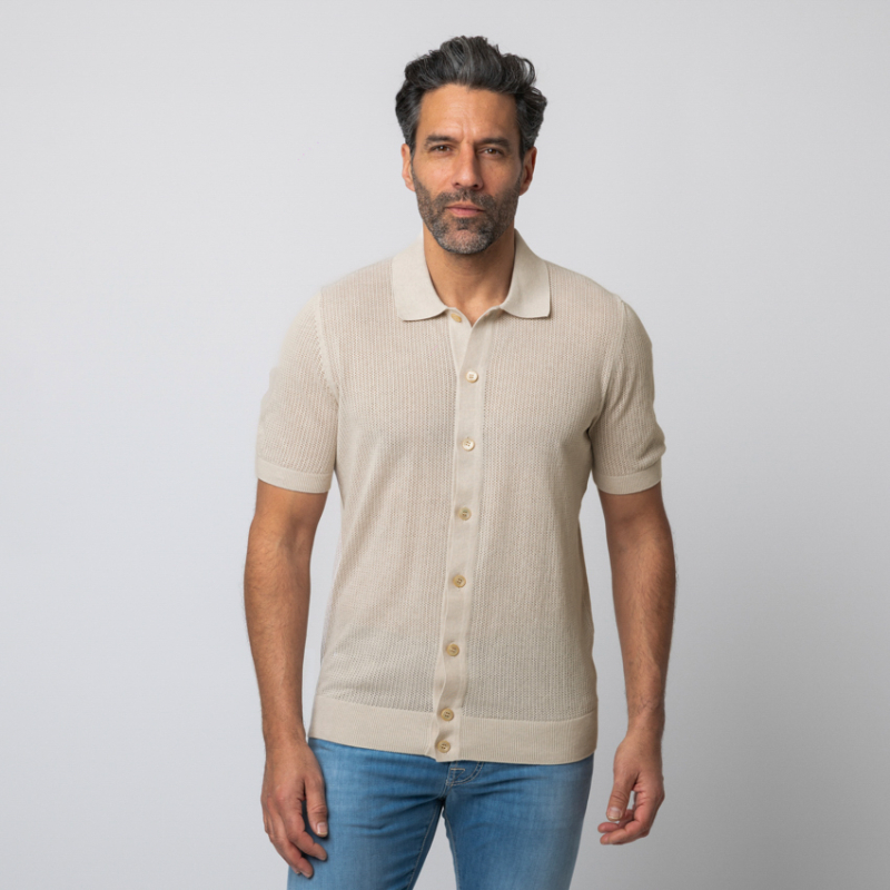 À la croisée des chemins entre la décontraction d'un polo et la prestance d'une chemise, ce modèle hybride beige clair Gran Sasso est un chef-d'œuvre de polyvalence. Sa maille texturée offre un tombé d'une fluidité parfaite, tandis que son ouverture entièrement boutonnée permet de le porter fermé pour une allure classique, ou superposé sur un t-shirt blanc en guise de surchemise légère. Une pièce de layering luxueuse, pensée pour l'homme moderne en quête d'une sophistication subtile.