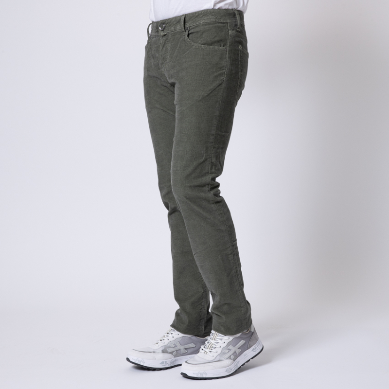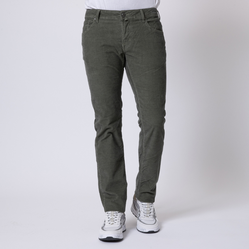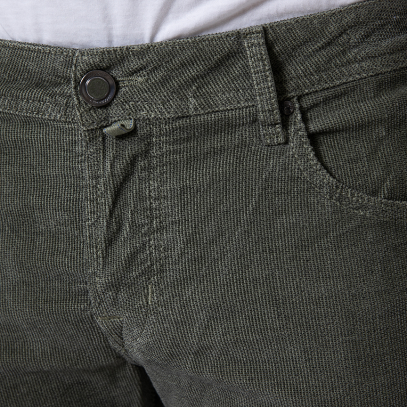 - Jeans velours texturé vert.