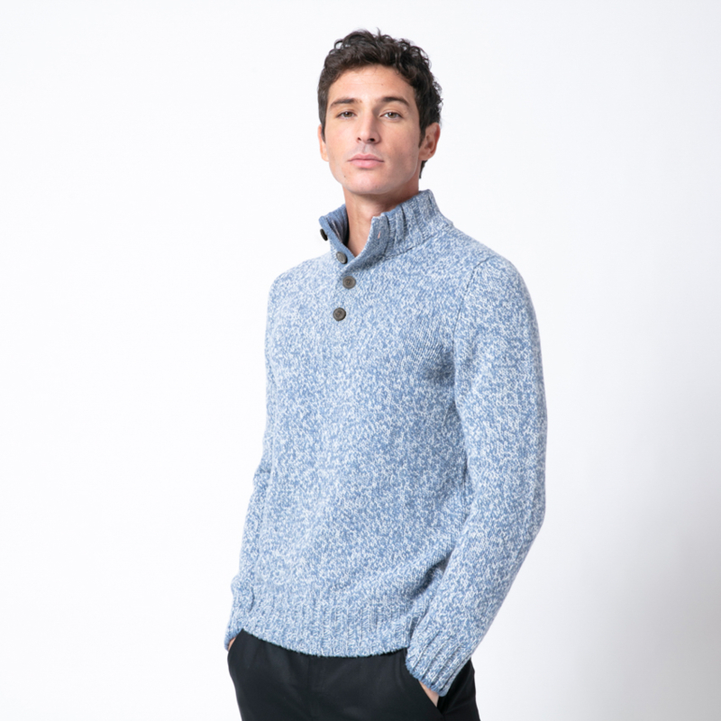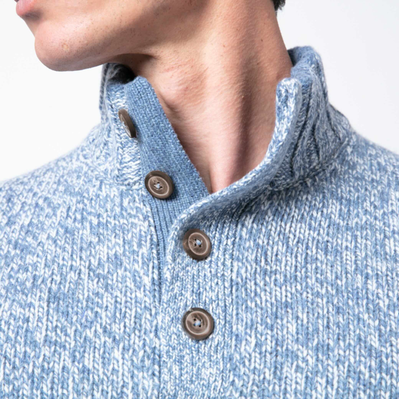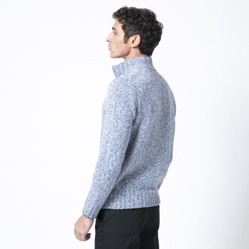 GRAN SASSO - Pull bleu céruléen à col montant cheminée