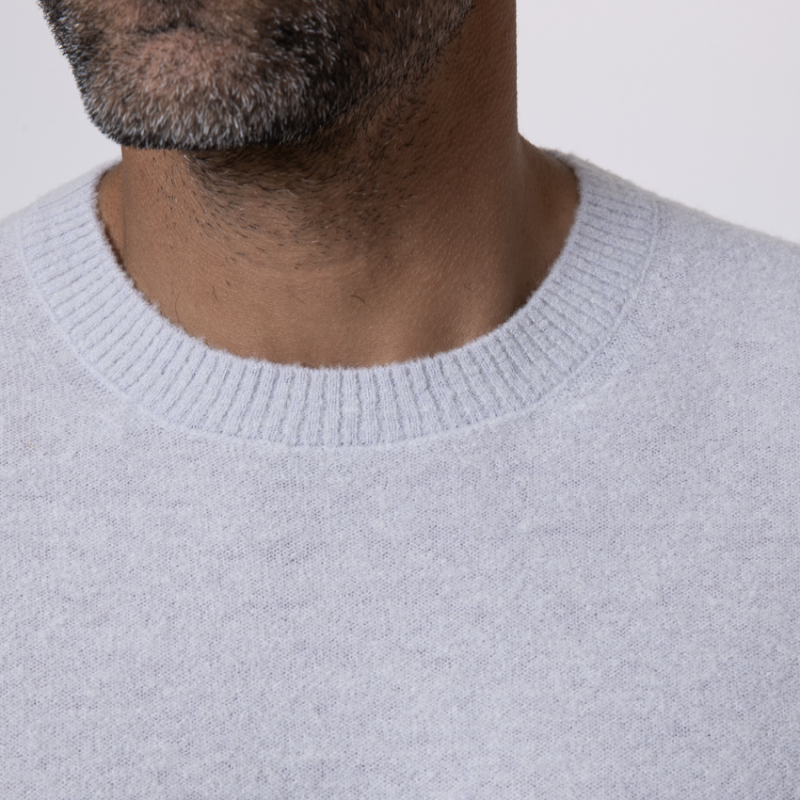 • Pull gris clair à col rond.