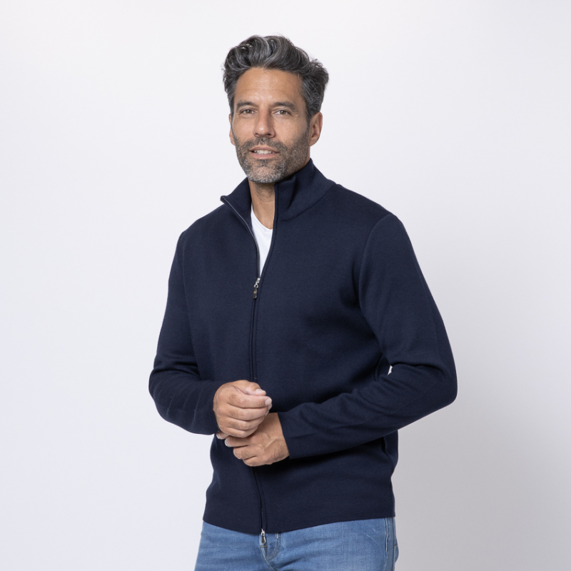 GRAN SASSO - Gilet zippé bleu marine
