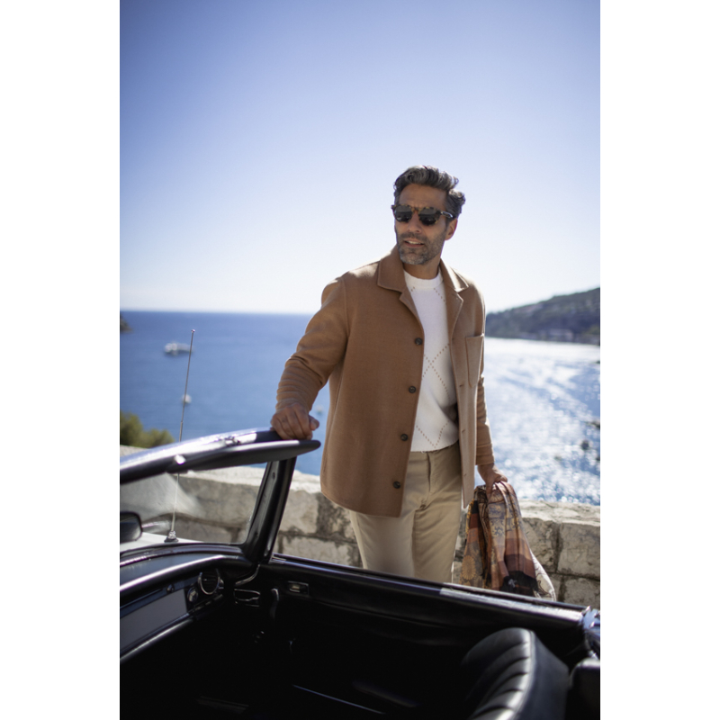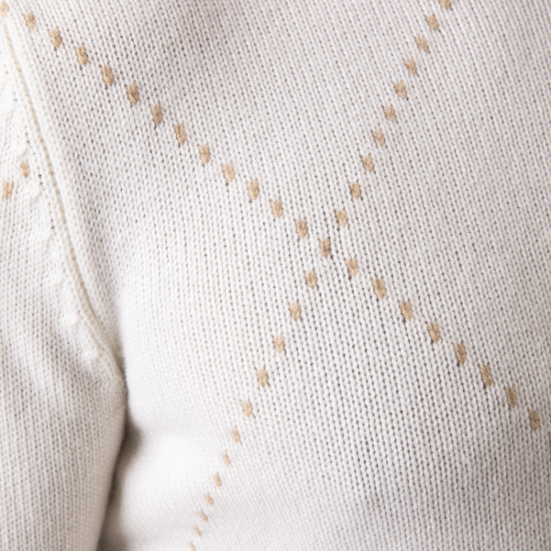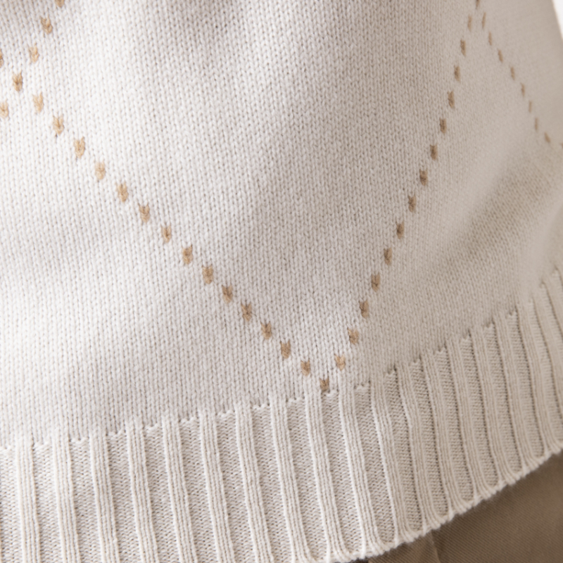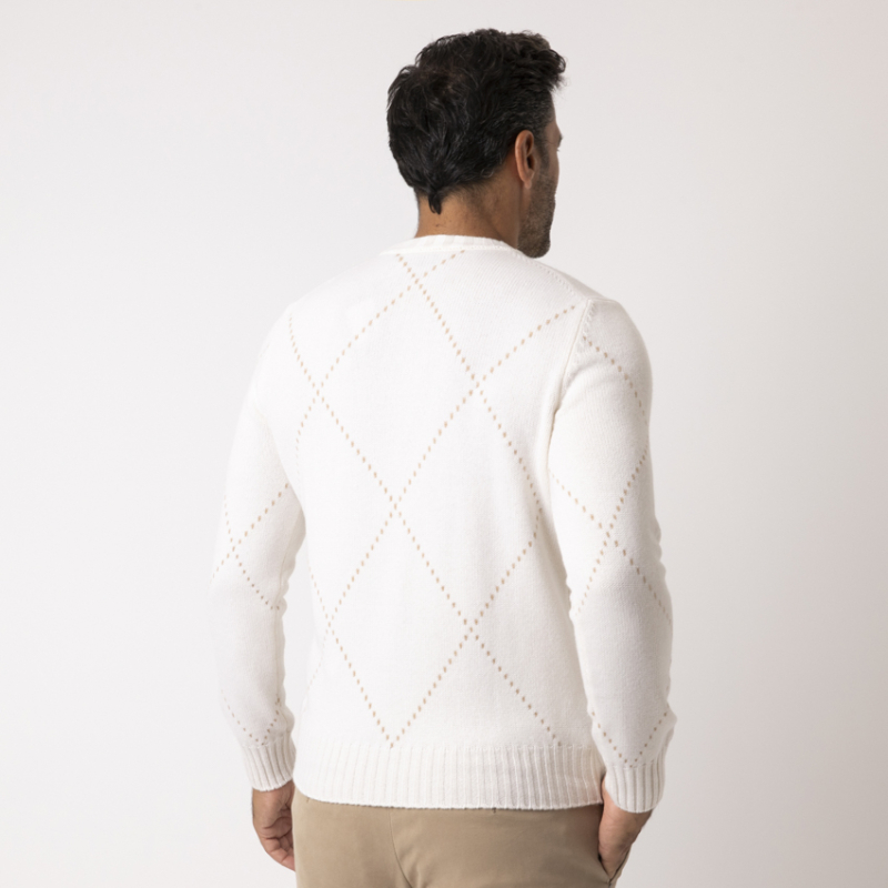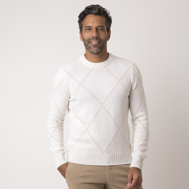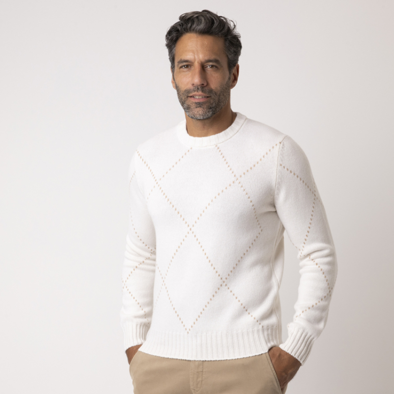 Ce pull crème Gran Sasso élève la maille classique au statut d'œuvre d'art. Confectionné dans un cachemire somptueux, il est orné d'un motif losanges minimaliste et raffiné. Le design discret, mais reconnaissable, témoigne de l'excellence de la fabrication italienne. Une pièce intemporelle qui apporte une touche de sophistication et de légèreté, parfaite sous un blazer ou un manteau camel.
