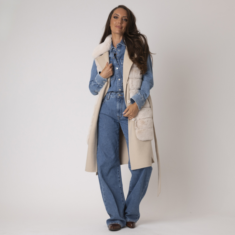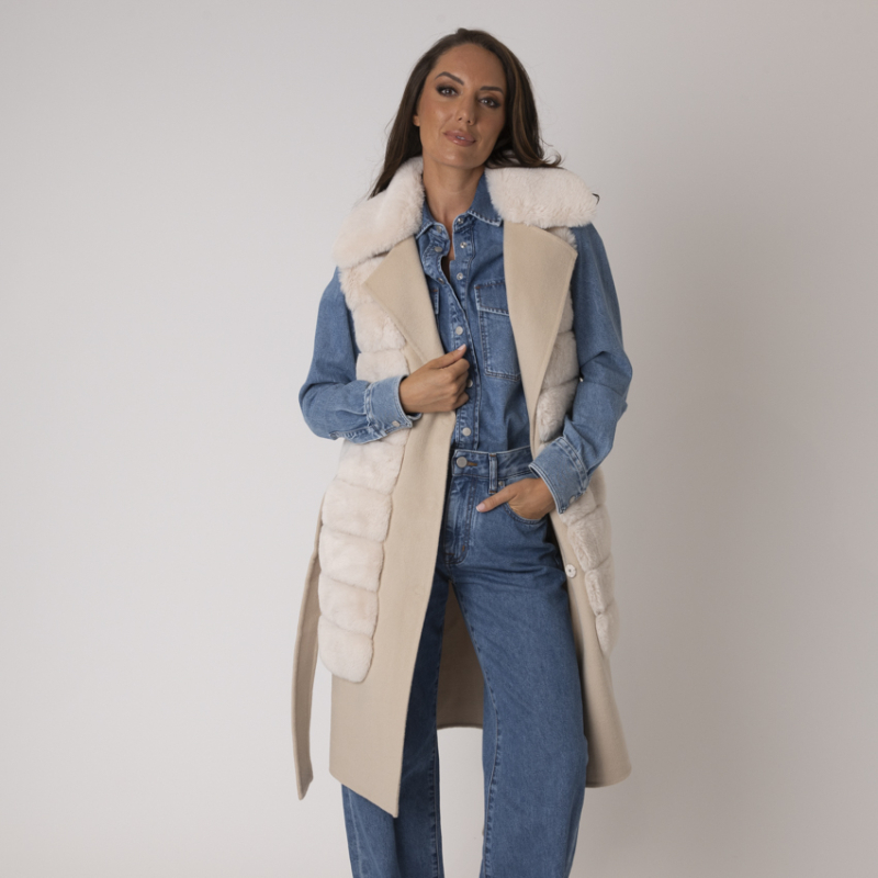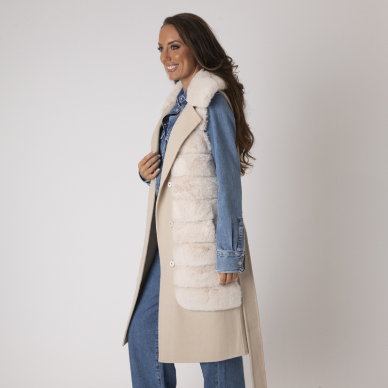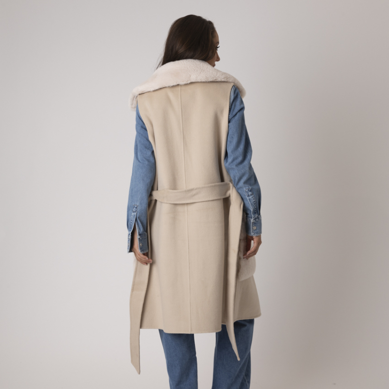 - Gilet sans manches trois-quarts à simple boutonnage.