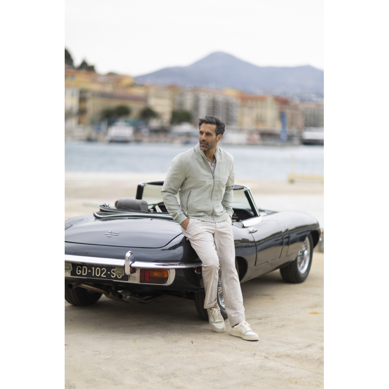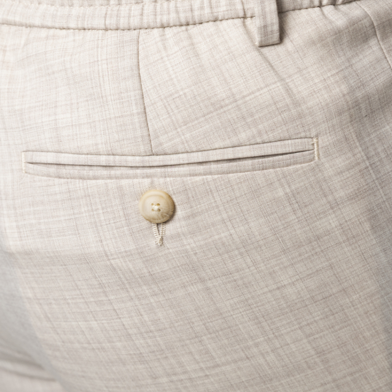 L'élégance estivale trouve sa parfaite expression dans ce pantalon beige chiné signé Gran Sasso. Conçu pour les beaux jours, il dévoile une texture aérée aux nuances sable subtiles. Sa taille dotée d'un cordon de serrage garantit un tombé impeccable tout en offrant un confort absolu. Idéalement associé à un polo en maille ou une sur-chemise, ce pantalon d'été fluide est l'incarnation même d'un chic balnéaire sophistiqué.
