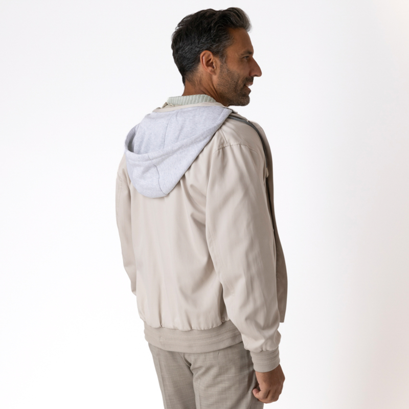 Avec ce bomber d’exception, Eleventy réinvente l’essence du style casual chic à travers une pièce emblématique sublimée par la noblesse de la soie naturelle. Issu de la collection Printemps-Été, ce blouson incarne à la fois la légèreté, le confort et le raffinement discret qui font la renommée du vestiaire italien.