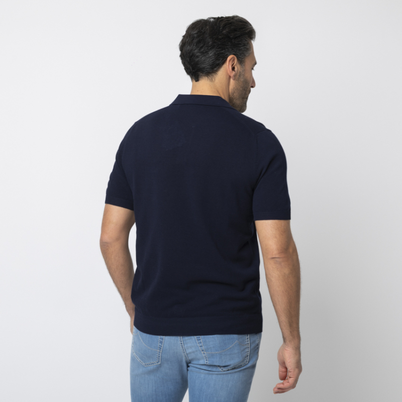 • Polo bleu marine en maille à manches courtes.