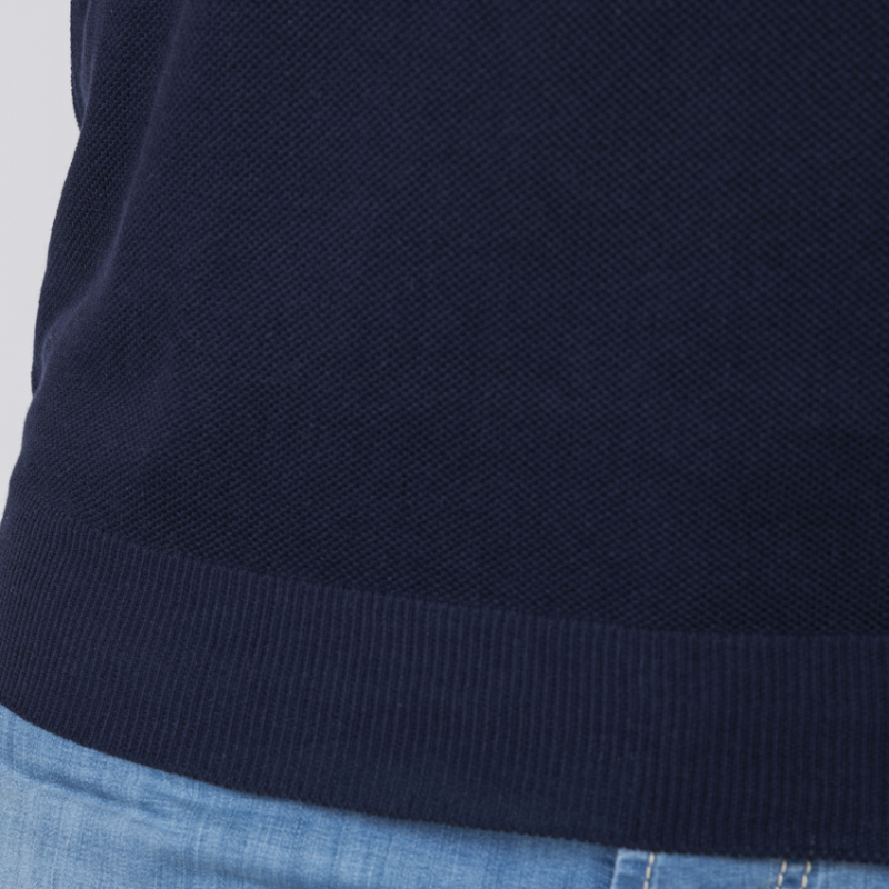 GRAN SASSO - Polo bleu marine col skipper en coton piqué