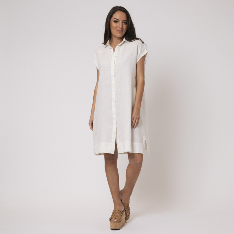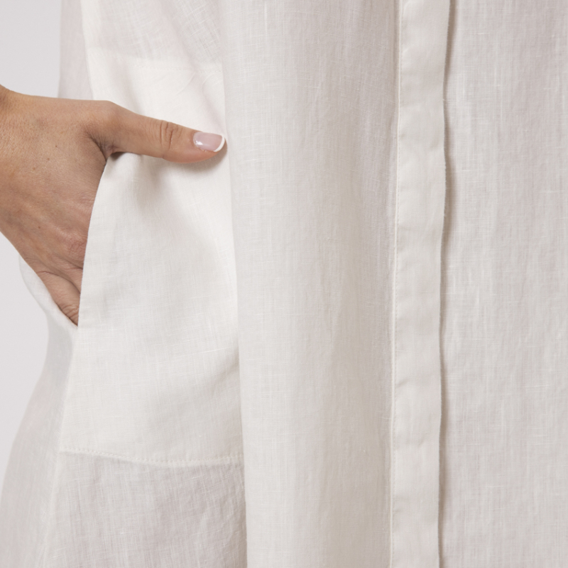Découvrez cette robe courte en lin DUNCAN, écrin de fraîcheur et d’élégance minimaliste. Son col chemise, ses fentes discrètes et sa patte de boutonnage intégrale composent une allure libre, à la fois sobre et raffinée. Une pièce lumineuse confectionnée de lin en Italie, pensée pour accompagner l’allure d’un été sans effort.