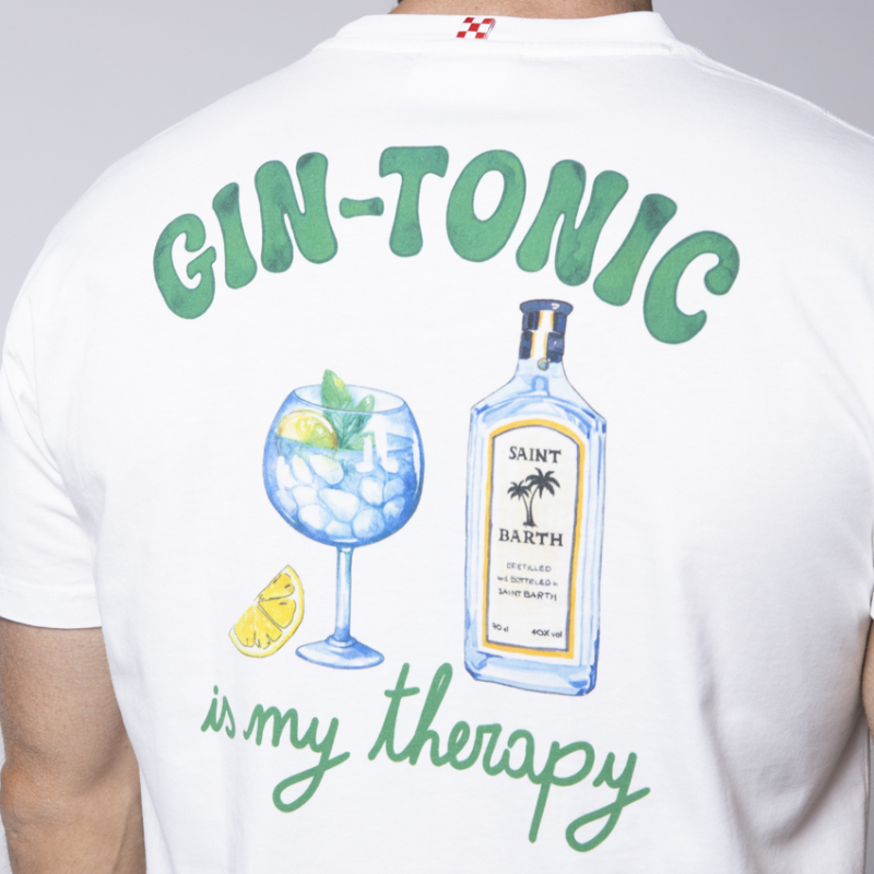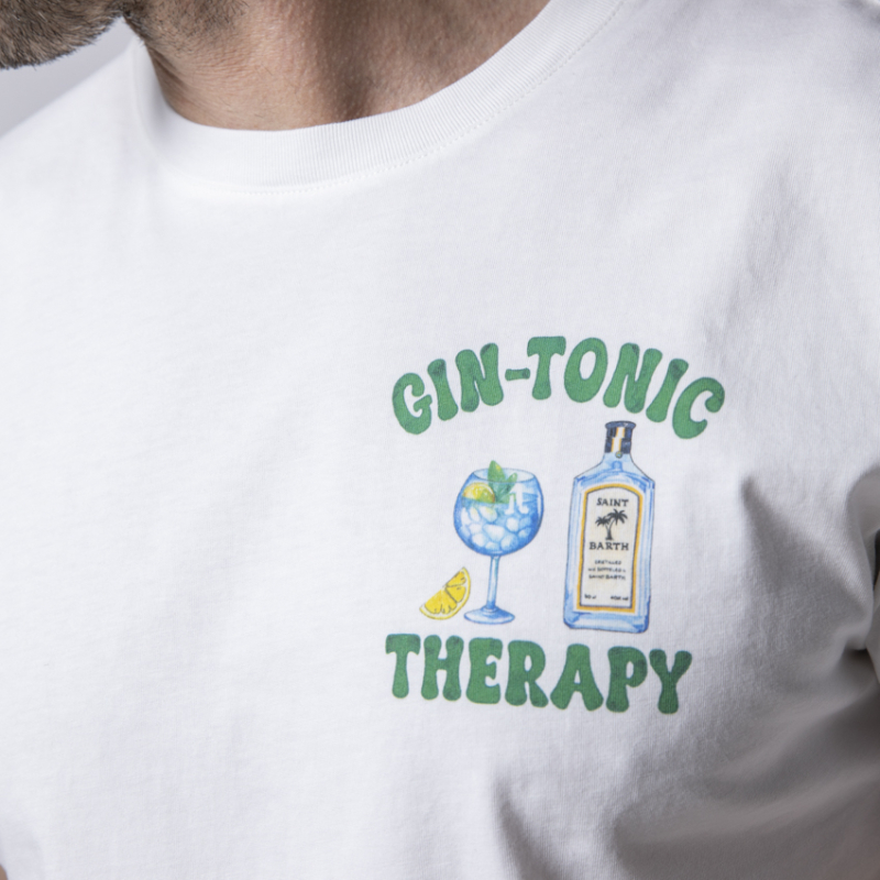 Plongez dans l’esprit estival avec ce t-shirt blanc MC2 SAINT BARTH, clin d’œil rafraîchissant à la dolce vita. Son imprimé "Gin Tonic Therapy" façon cocktail de bonne humeur fait de lui la pièce idéale pour chiller avec style, en bord de mer ou à l’apéro. Un essentiel casual à l’humour chic.