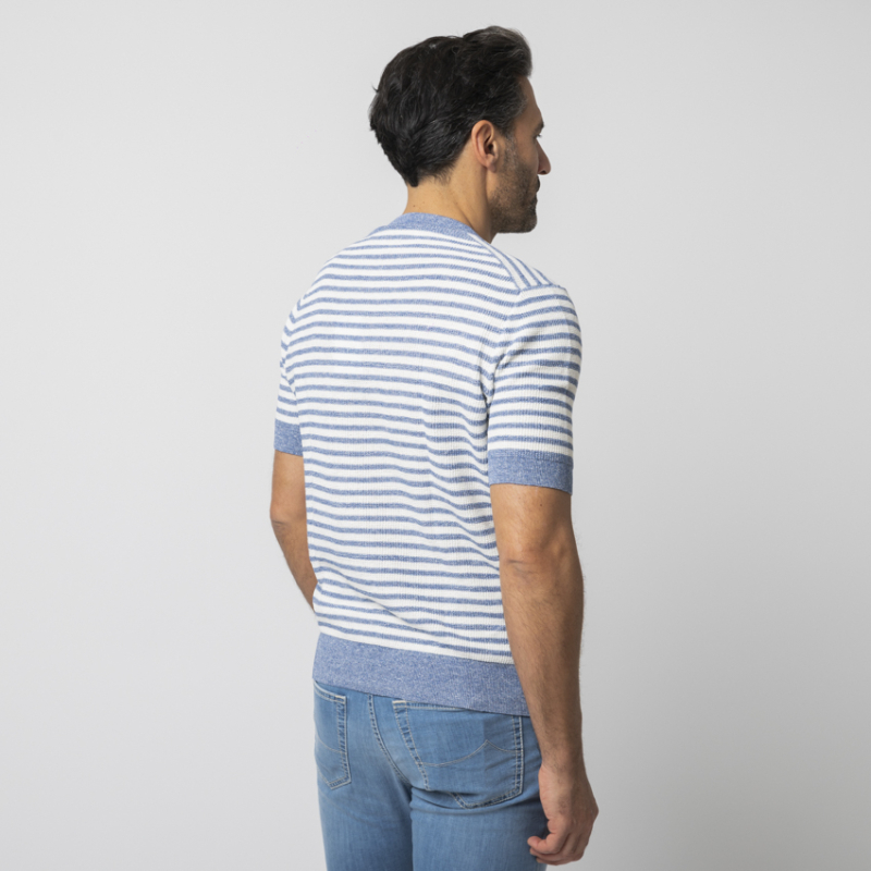 GRAN SASSO - T-shirt en maille à rayures bleues et blanches