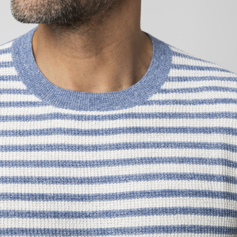 • Motif à rayures horizontales (bleu chiné et blanc).