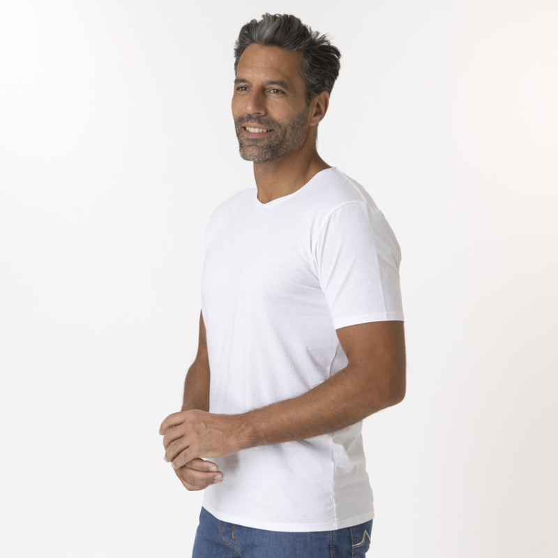 - T-shirt blanc à manches courtes finitions piquées.