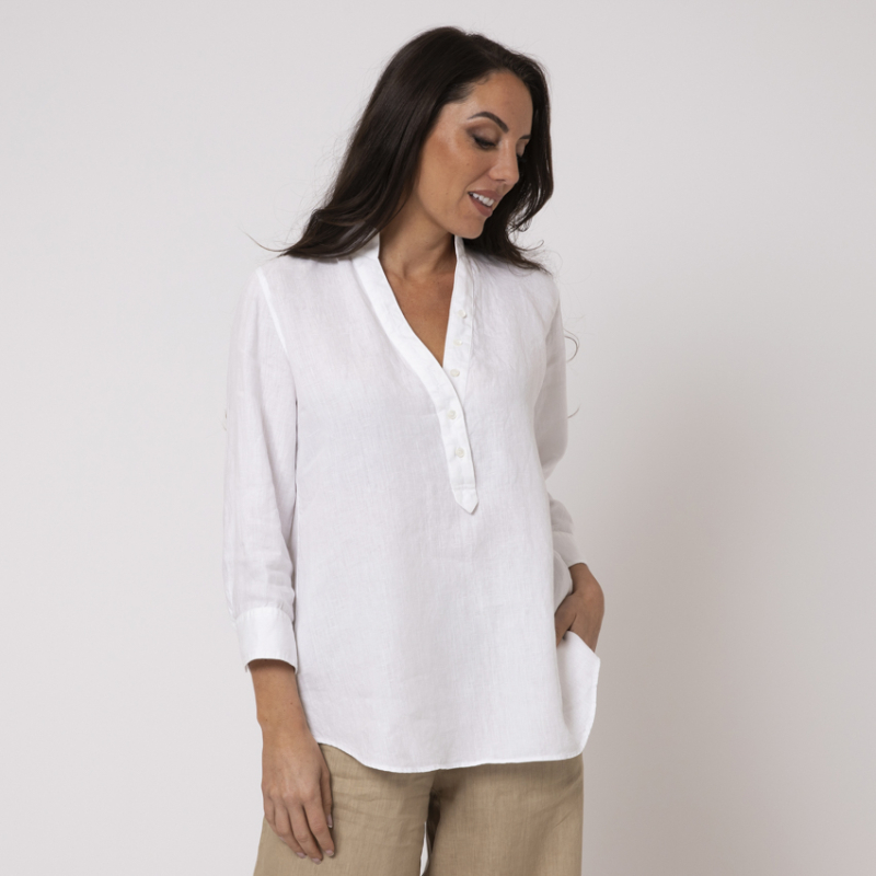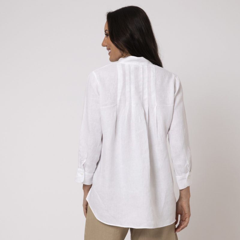 Blouse en lin DUNCAN à l’élégance naturelle, parfaite pour la saison estivale. Son col tunisien et ses plis d'aisance au dos offrent une allure à la fois fluide et structurée. Une pièce légère et raffinée confectionnée de lin en Italie, idéale pour un style chic et décontracté.