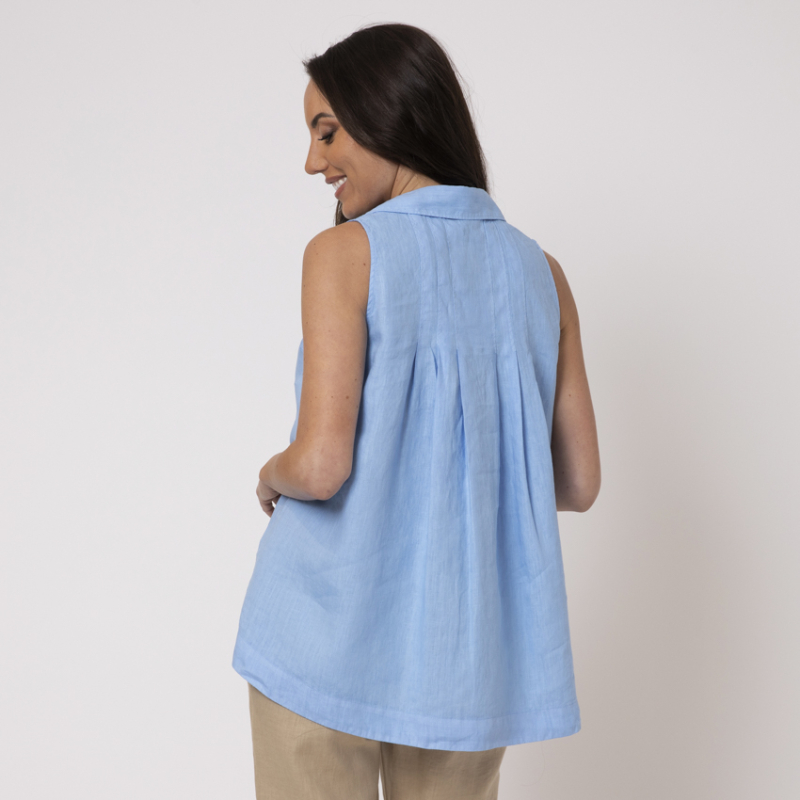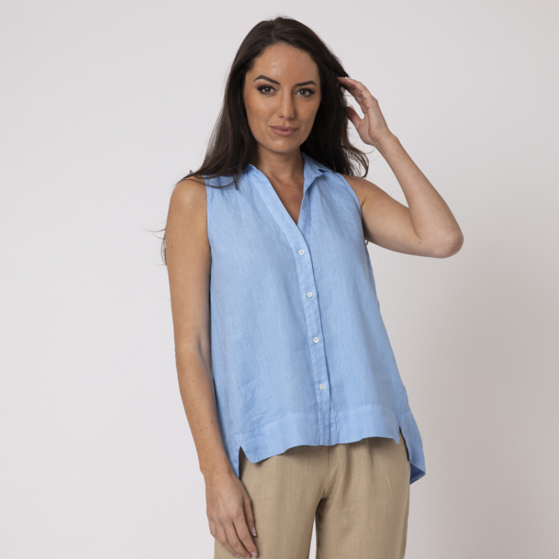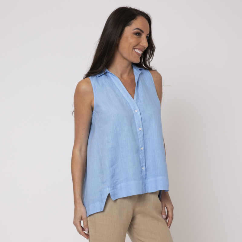 Le top DUNCAN en lin pour Femme incarne la légèreté estivale avec sa coupe sans manches et son col chemise. Ses plis d’aisance au dos ajoutent une touche de fluidité à la silhouette, tout en garantissant confort et élégance. Un essentiel raffiné confectionné de lin en Italie, parfait pour les journées ensoleillées.