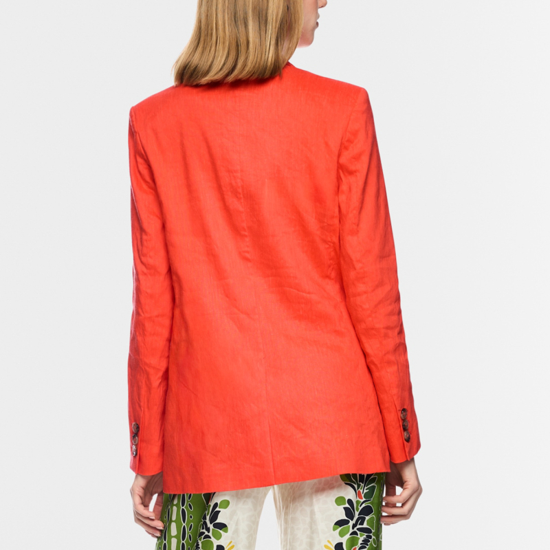Ce blazer long Marc Cain, confectionné dans un mélange de matières haut de gamme, séduit par ses lignes élégantes et son confort moderne. Les épaulettes dessinent une silhouette nette, tandis que les poignets fendus à trois boutons apportent une touche stylée. La fermeture classique à deux boutons et les poches à rabats font de ce blazer un indispensable polyvalent.